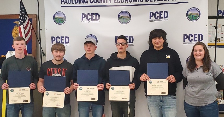 Archbold, Ohio – Communication, collaboration, and partnerships are all sometimes a difficult ask. The ultimate goal of all three is to produce action that leads to meeting a goal or need. At Paulding High School, the goal was met as five students completed the Northwest State Community College welding course. The offering, consisting of two college level welding courses, came to fruition alongside the OhioMeansJobs-Defiance and Paulding Counties Office, the Paulding County Economic Development Office, Paulding High School, and Northwest State Community College.